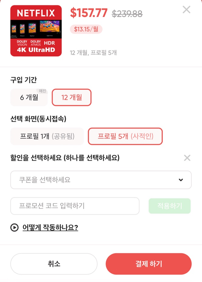 ๋ทํ๋ฆญ์ค ์๋น์ค๋ฅผ ๊ธฐ์ค์ผ๋ก ํ ์ธ์ฝ๋(ํ๋ก๋ชจ์ ์ฝ๋) ์ ์ฉํ๋ ๋ฐฉ๋ฒ์ ๋ํด ์๋ ค๋๋ฆด๊ฒ์. (์ ํ๋ธ ํ๋ฆฌ๋ฏธ์, ํ์ด๋ฌ, ์คํฌํฐํ์ด ๋ฑ ํ ์ธ์ฝ๋ ์ ์ฉํ๋ ๋ฒ์ ๋๊ฐ์์!)